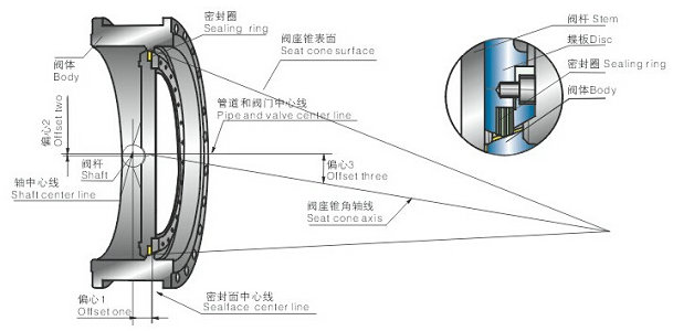 氣動(dòng)三偏心蝶閥由氣動(dòng)傳動(dòng)機構和三偏心蝶閥組成,根據連接方式不同一般可分為法蘭或對夾式,材質(zhì)分為碳鋼、不銹鋼等,閥體部分采用三偏心結構,閥板與密封機構設計獨特,具有優(yōu)良的切斷性能和耐久性能,同時(shí)兼備切斷、調節雙重功能,屬長(cháng)壽命、節能型蝶閥。由于氣動(dòng)三偏心蝶閥的關(guān)閉和閘閥關(guān)閉一樣,是靠扭矩來(lái)完成的,即閥門(mén)關(guān)閉的扭矩越大,閥座的密封性就越好,故有人稱(chēng)三偏心蝶閥為90°旋轉閘閥。